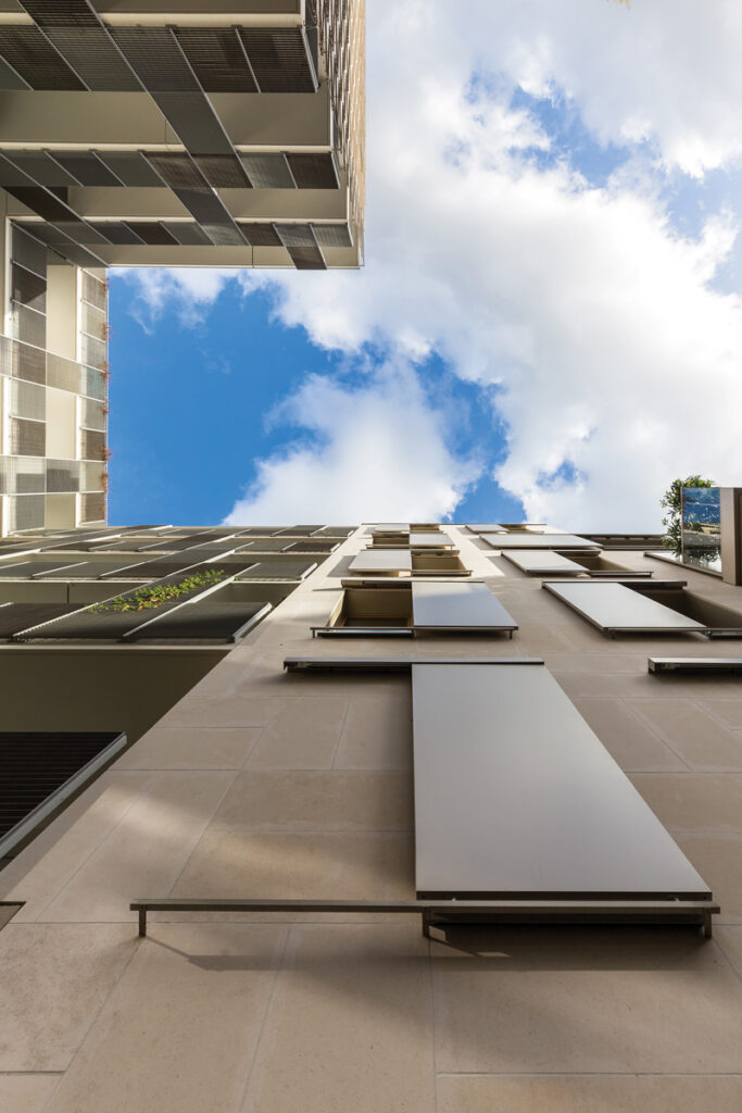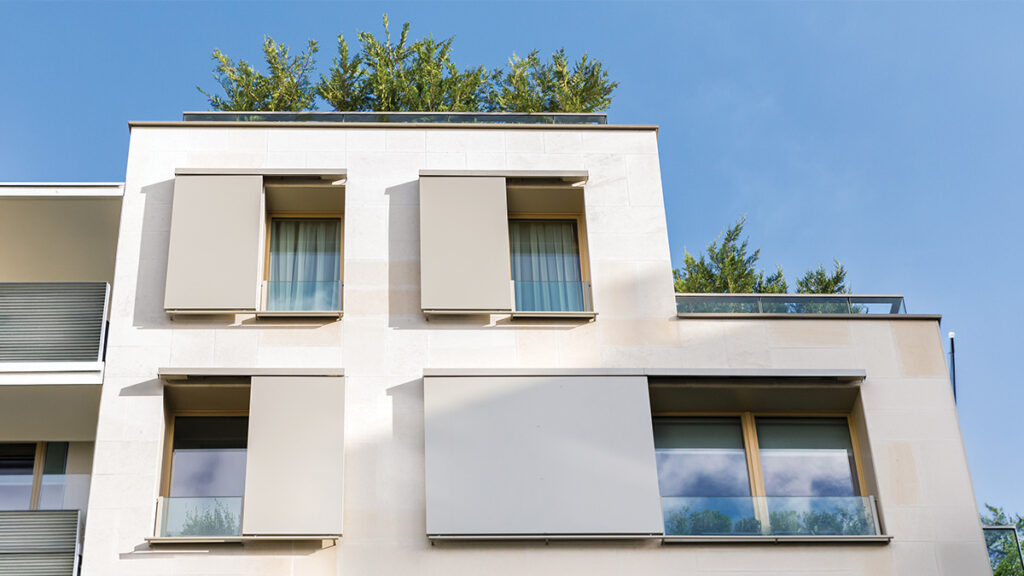 Le mécanisme est dissimulé sous un capot aluminium, disponible en finition brute à laquer ou en plusieurs coloris RAL, pour une parfaite cohérence esthétique avec la menuiserie.