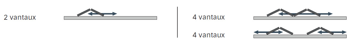 La motorisation est conçue pour des configurations sur mesure, en 2 ou 4 vantaux, avec un encombrement réduit et une occultation maximale en toutes positions. Elle intègre des phases d’accélération et de ralentissement, une sécurité anti-pincement et une fonction anti-effraction par résistance automatique à l’ouverture. Le pilotage est possible par commande radio ou filaire, avec compatibilité aux systèmes de GTC, GTB et domotique .