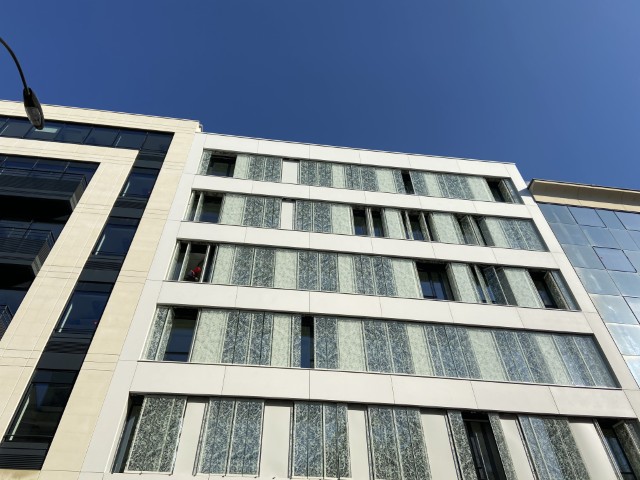 L’objectif était double : préserver la transparence et l’élégance des lames vitrées, tout en assurant une double peau du bâtiment et du confort intérieur. La motorisation permet une orientation précise des lames afin d’adapter la luminosité, limiter l’éblouissement et optimiser la performance énergétique du bâtiment.